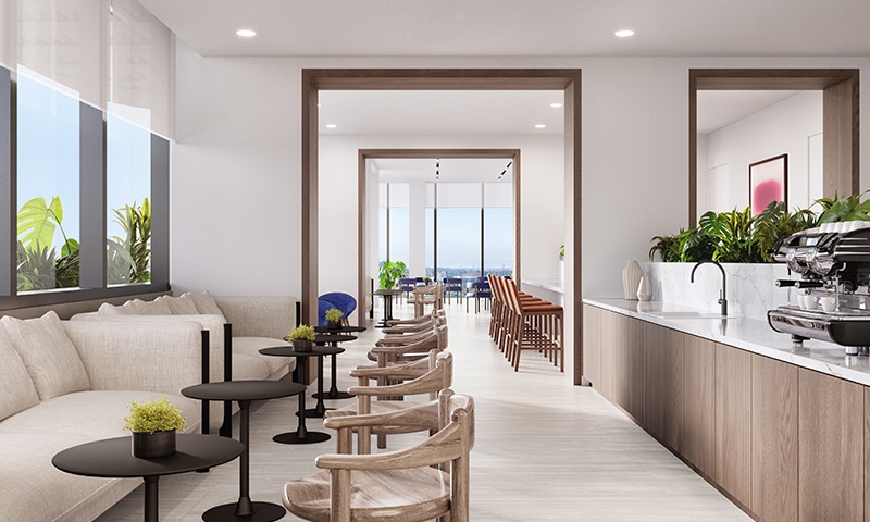• Gourmet kitchens with integrated Bosch appliances and custom cabinetry