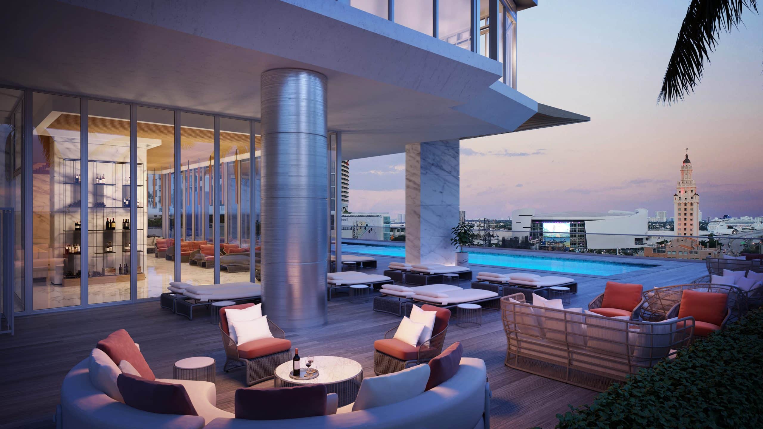 The masterpiece of downtown Miami with its subtly undulating glass façade that rises gracefully toward its apex, Okan Tower is an imposing