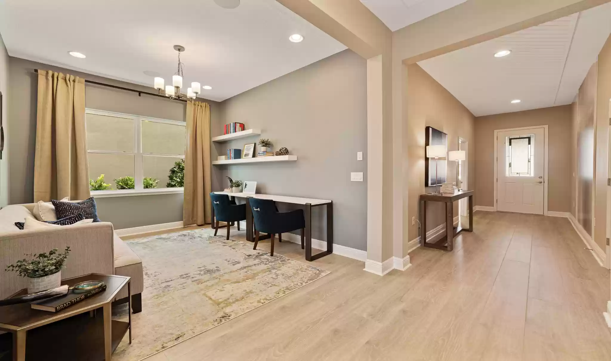Multi-generational design that provides a private living room and opts. small kitchen. Extra Suite Plus with additional acoustic insulation for greater comfort. Cozy grand foyer with optional tray ceiling. Impressive kitchen with large central island. Large great room overlooking the terrace. The price does not include the land premium.