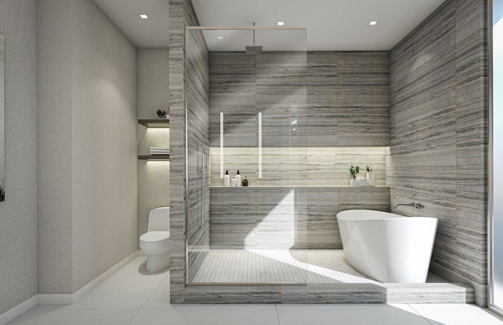 • Baño principal inspirado en un spa amueblado con una lujosa ducha tipo lluvia, independiente de gran tamaño